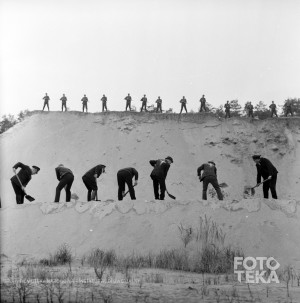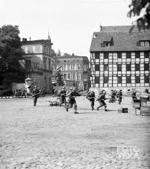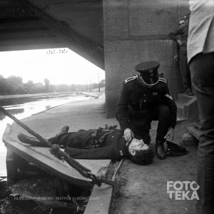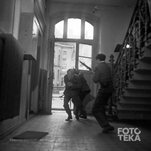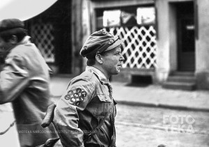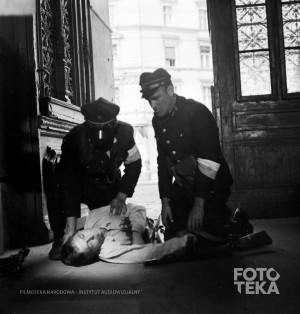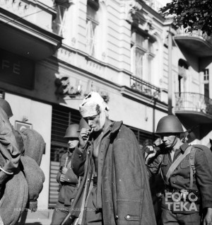 mężczyzna odprowadzający Piotra do miejsca internowania Niemców